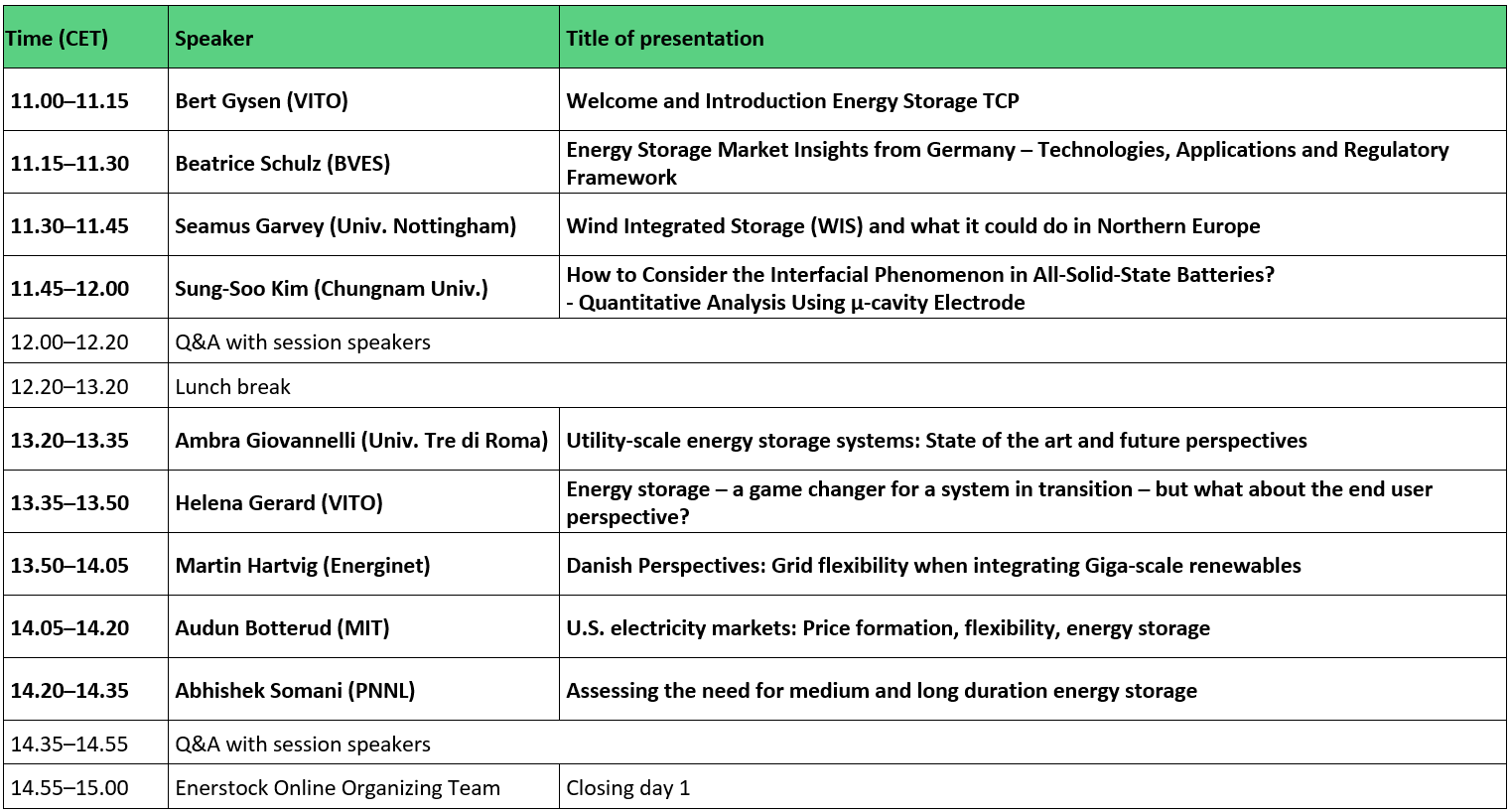 With an increasing interest in energy storage and the urgency to accelerate the development to a decarbonized energy system where energy storage plays a crucial role, ES TCP organizes a mid-term Enerstock Online conference between the two physical Enerstock conferences.